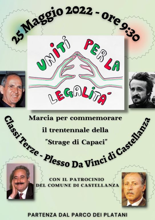 Le commemorazioni proseguiranno, nella mattina di mercoledì 25 maggio prossimo, con la manifestazione, in attuazione del Piano Diritto allo Studio 2021-22, “Marcia della Legalità”.
