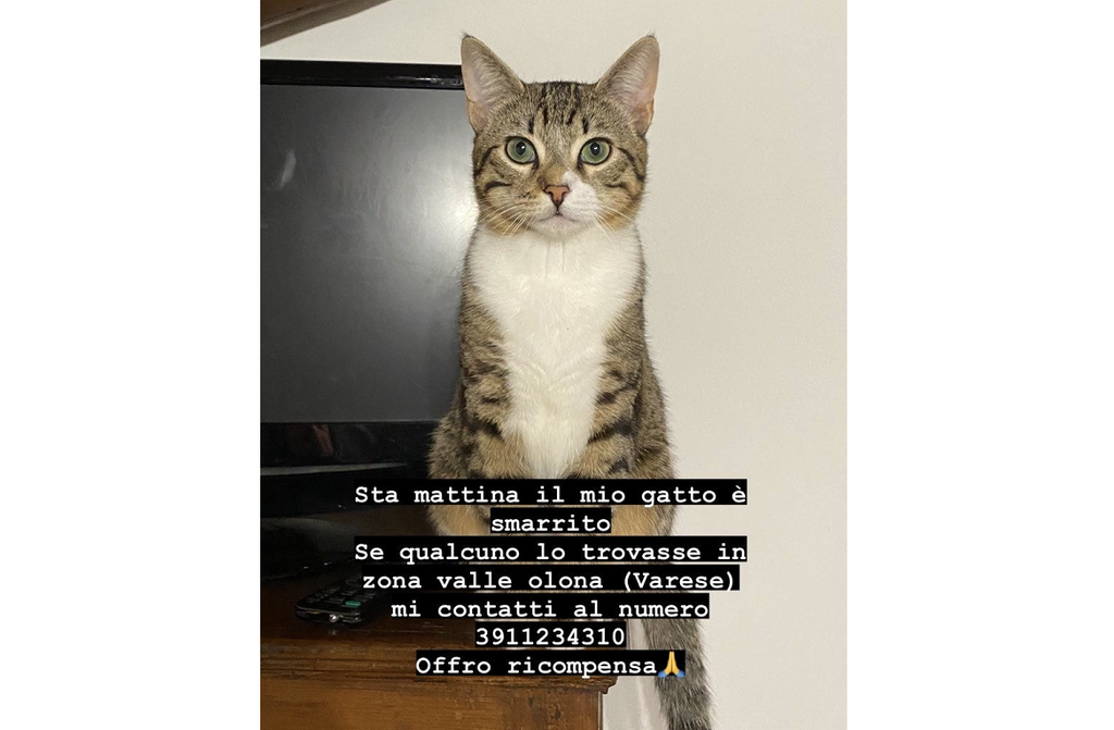 «Chiedo gentilmente se potete pubblicare la foto del nostro gattino Lil. Si è smarrito questa mattina, è buono e si fa avvicinare. Se qualcuno lo trovasse ci può contattare ai seguenti numeri 377.1927483 oppure 391.1234310».