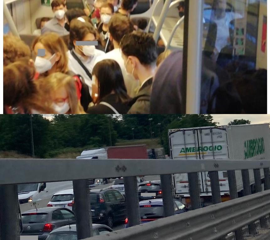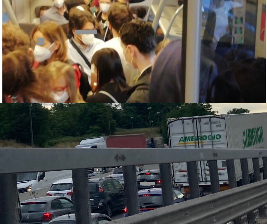Meglio prendere il treno, incita il buonsenso. Dove però in certi orari cambiano le condizioni dell'affollamento: non chiusi nella propria auto, bensì in piedi sui convogli. L'emergenza Covid sembra aver allentato la presa, ma non è che questo spazzi via tutti i timori e il disagio pesa ancora di più in estate.