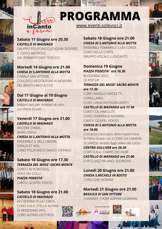 La varietà dei luoghi delle esibizioni e del repertorio presentato pongono la manifestazione come un qualificato momento di incontro artistico e culturale. Per questa edizione 2022 sono previsti 16 concerti con 27 gruppi vocali/cori, oltre ad una masterclass per direttori di coro il 17-18 e 19 giugno con Petra Grassi. La rassegna, organizzata dall’Associazione Solevoci di Varese, si svolge in collaborazione con il Comune di Varese e Fondazione Comunitaria del Varesotto.