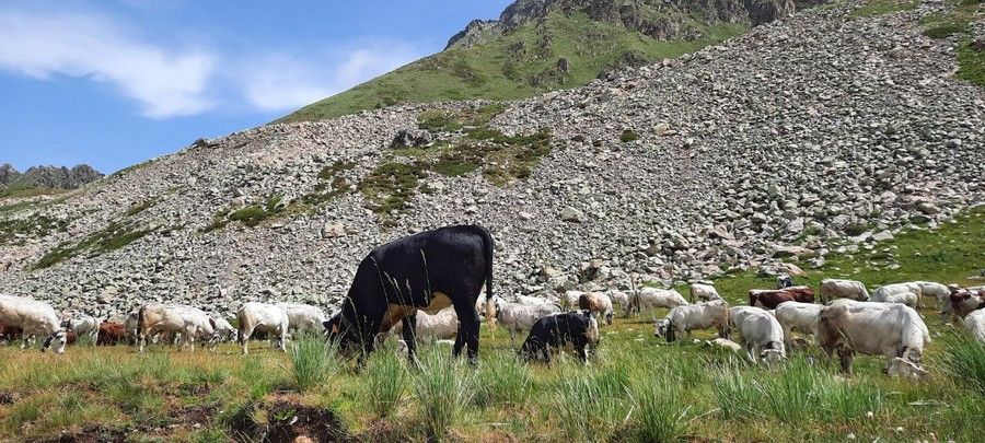 L'azienda ha un orientamento di tipo estensivo e pratica la transumanza e l'alpeggio estivi a Mollières, all'interno del Parco del Mercantour. Ieri, mercoledì 22 giugno, 230 animali sono stati portati a piedi oltre il colle della Lombarda.