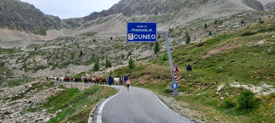 La pioggia e il vento hanno accompagnato la giornata di transumanza in alta valle Stura dell'Azienda agricola Fiore dei Monti di Moiola. Un'azienda famigliare nata da Andrea Colombero e dalla moglie Barbara Viale che nel 2016 decisero di trasferirsi nella località Maigre alle porte di Moiola in bassa Valle Stura, per lavorare in modo sostenibile, rispettando l'ambiente con una produzione altamente territoriale.