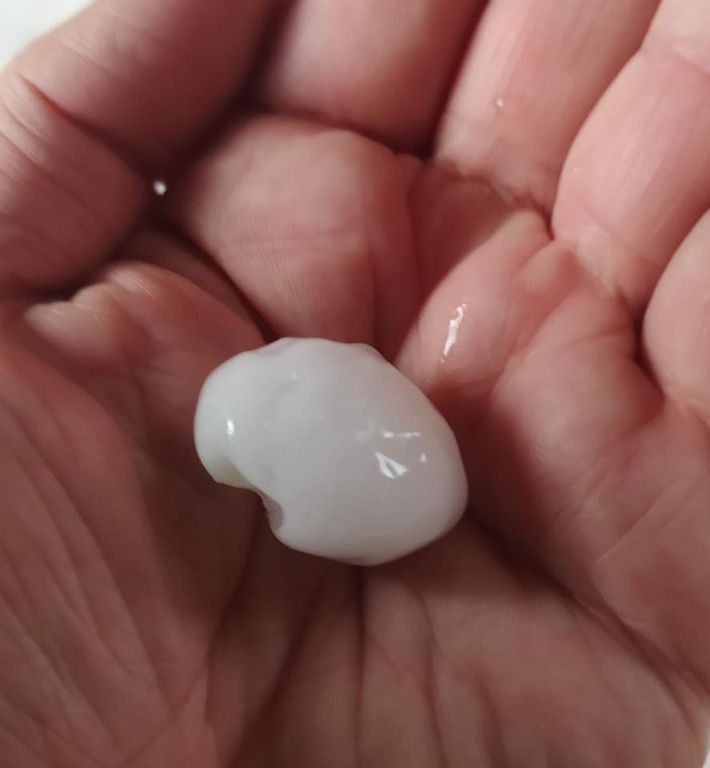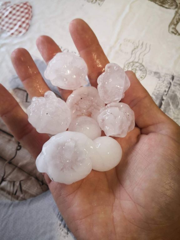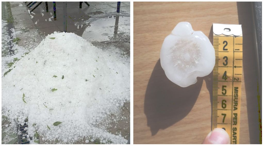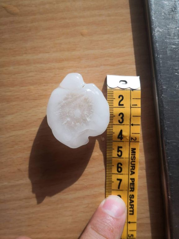 A Gozzano, nel vicino Piemonte, è andata peggio con grandine fino a 4 centimetri di diametro (foto sopra).