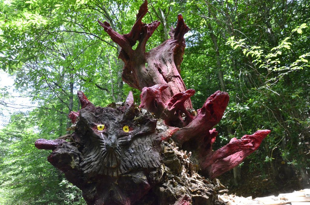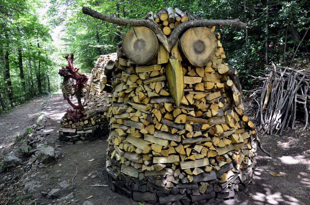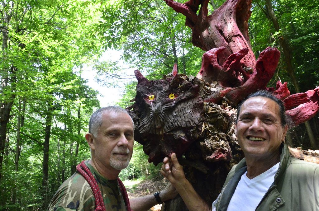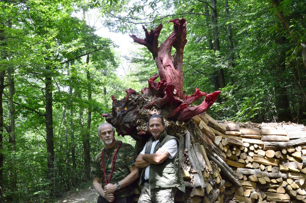I due, peraltro, sono recidivi, perché lo scorso aprile hanno per così dire inaugurato un gufo monumentale in legno di castagno con occhi di ontano nero e tanto di sopracciglia, che visto adesso sembra un abitante di Lilliput a confronto del mostro dalla gobba di chiocciola che avrebbe spaventato pure San Giorgio con la lancia e tutto il resto.