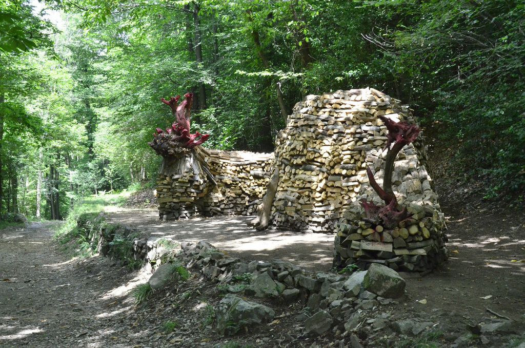 Due mesi a recuperare la legna, pulendo i boschi del Franco della baita del Pradell, che in cambio ha donato la materia prima per lo strambo dragolumaca, che farebbe la felicità degli illustratori di libri per bambini e avrebbe incantato Rodari, con la sua sinuosa silhouette e la coda multiforcuta, naturalmente scarlatta come la testa cornuta, dal muso baffuto e dagli occhi gialli indagatori che spiccano a metri di distanza.