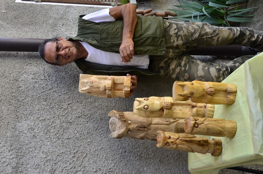 Lorenzo, seguito come un’ombra da Anam, cane pastore di Piccardia, razza rara in Italia, di un giorno ha invece ripreso da poco a lavorare il legno: «Devo dire grazie alla mia nuova morosa, Alessandra, milanese purosangue con casa a Ghirla, e musa ispiratrice. Piccoli lavori, senza far troppa fatica, perché ho due vertebre malmesse. Appena arriveranno quattro soldi della pensione acquisterò pirografo e sgorbie e realizzerò quadri e intarsi», spiega l’uomo che, schiena andata o meno, ha accatastato 12 tonnellate di legname senza fare un plissé e vive a Boarezzo da sei anni.