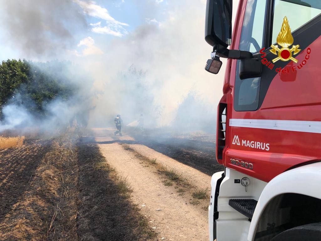 L'incendio le cui cause sono da accertare è partito da un campo coltivato in via Inglesina: sul posto 25 vigili del fuoco da Saronno, Varese, Busto, Gallarate e Inveruno. In fumo cinque ettari: periti quattro cani e due cervi