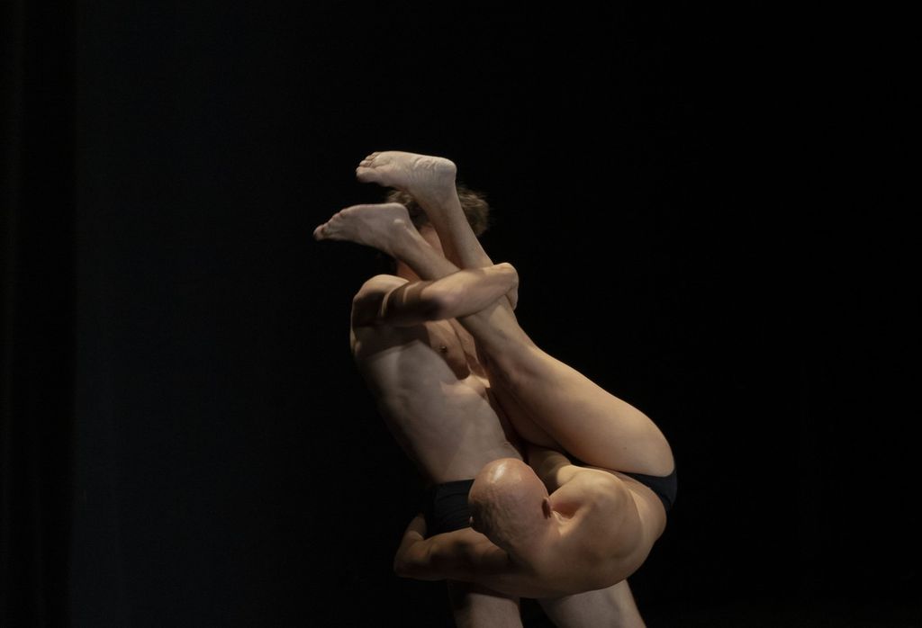 Fin dai primi giorni abbiamo cercato di cogliere nello sguardo dei due interpreti, soprattutto un riconoscersi e attraverso questa reciproca ri-conoscenza, restare in ascolto di questa loro fase germinale. È seguito poi, diremmo in maniera naturale e quasi esclusivamente autogestito da loro stessi, uno sviluppo simbiotico dell’azione fino ad arrivare alla solitudine e al groviglio di arti e luce, di suoni e silenzi; il tutto attraverso un processo di relazione quasi esclusivamente somatico.