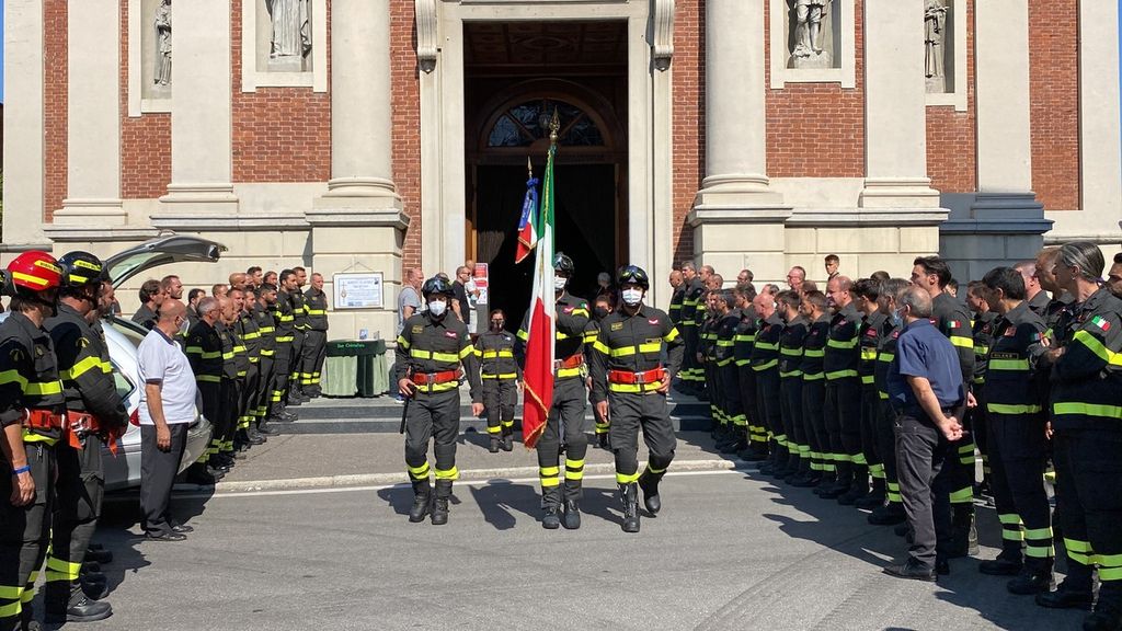 All’uscita dalla chiesa, il suono delle sirene delle autopompe ha salutato un’ultima volta quel vigile del fuoco che verrà ricordato da tutti con il sorriso e con l’entusiasmo di voler aiutare gli altri.