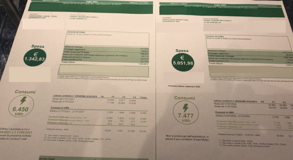 Ne è esempio la storica Pasticceria Buosi, in particolare nella sede di Varese. Il titolare, Denis Buosi, a luglio 2022 si è visto infatti arrivare una bolletta aumentata di ben quattro volte: «Per i 60 metri quadri di negozio - racconta - dobbiamo pagare 5.000 euro, quando l’anno scorso nello stesso periodo eravamo a poco più di 1.000. È fuori da ogni logica: paghiamo l’affitto, abbiamo dei dipendenti, come possono pensare che si possa fare impresa in Italia in questo modo? È un problema europeo, ma nessuno è al nostro livello. Non è possibile che nessuno intervenga, si pensa solo a fare profitto: mi risulta che Edison, quest’anno, abbia fatto utili fuori dal mondo. Gli aumenti non devono essere sostenuti da noi, c’è qualcosa sotto di molto più grosso, non si capisce che risultato debba essere raggiunto».