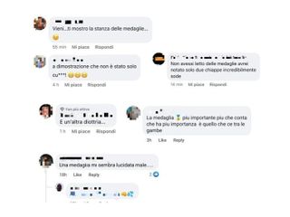 Sono stati molti, troppi, i commenti e le battute, che definire fuori luogo è senza dubbio eufemistico. Alcuni li ha voluti mostrare pubblicamente l'atleta nolese, scusandosi in anticipo con le sue giovani followers atlete "ma l’alternativa è il silenzio, che è uno dei motivi per cui oggi leggiamo ancora queste cose", ha scritto.