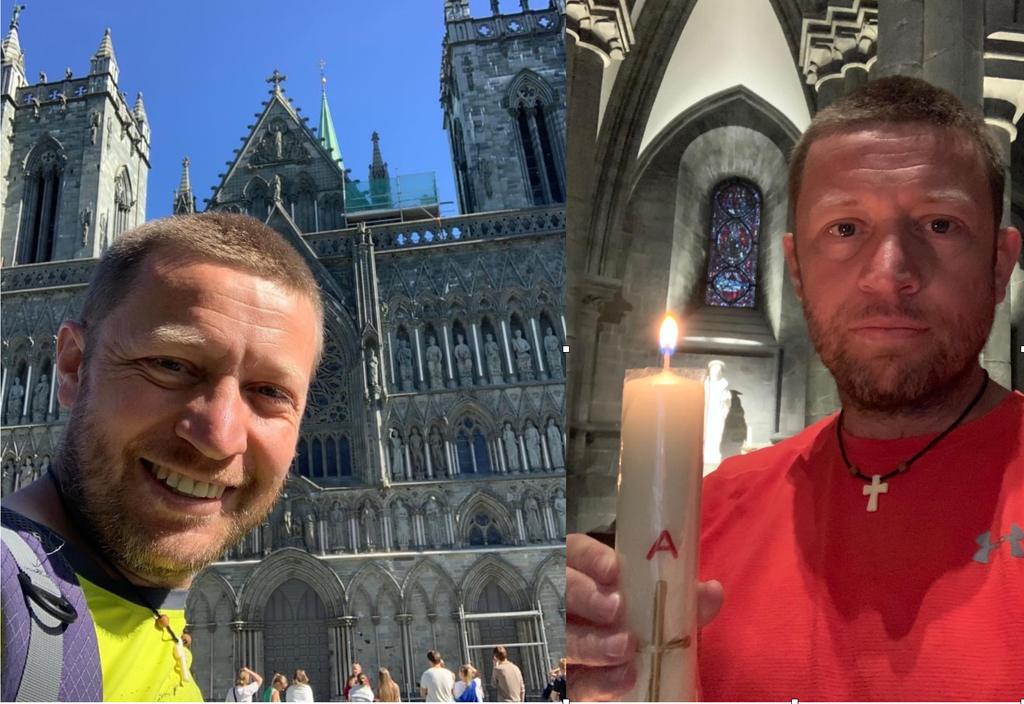 «Il primo scatto è l’inevitabile gioia dell’arrivo, con il rituale lancio dello zaino. La stanchezza che celebra l’andare, compiendone i passi - racconta sui social don David - Il secondo scatto è dentro la splendida cattedrale di Nidaros. Avvolto dalle curve gotiche, ho acceso una candela, che vorrei poter portare alla ministra Cartabia: perché tragga forza dal santo re vichingo Olav a compiere una scelta di umanità, a favore dei carcerati d’Italia, prima di lasciare via Arenula».