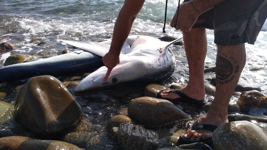 Tra le pietre del bagnasciuga uno squalo verdesca morto spiaggiato per cause da accertare. Subito è scattata la chiamata alla Capitaneria di Porto che dovrà ora ricostruire l'episodio e verificare le cause della morte. Si tratta di un esemplare di oltre due metri.