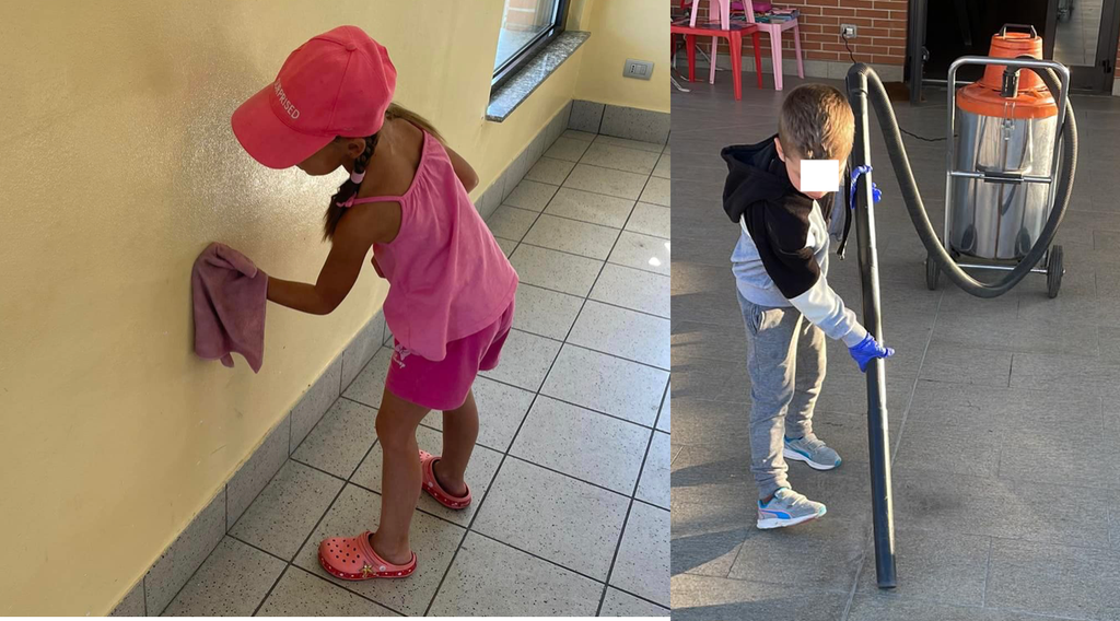 C'è addirittura un bimbo al quale bisogna nascondere il mocio perché vuole pulire sempre, assicura il parroco.