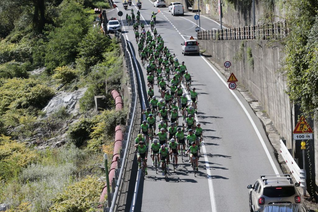 Ma c’è stato anche un altro momento emozionante: l’arrivo delle quindici lady che hanno circondato Damiano Cunego, pochi metri dopo il plotone che è riuscito a restare compatto per tutta la pedalata. Una corsa che si è rivelata un po’ faticosa in particolare negli ultimi cinque chilometri, ma anche qui la schiera è rimasta accorpata.