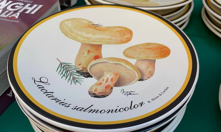 Dal 1977 il Gruppo Micologico Cebano realizza un piatto commemorativo (in numero limitato di pezzi) per ciascuna edizione della Mostra del Fungo. Il disegno del fungo sopra riprodotto reca la firma di Ernesto Rebaudengo (considerato uno dei migliori disegnatori scientifici di funghi dal vivo) nella prima parte della serie, fino alla sua prematura scomparsa. La sua “eredità” è stata poi raccolta da Maurizio Galliano, grafico e socio del Gruppo. A questo si deve il cambio di stile nello sviluppo della collezione. Perché tali sono i piatti commemorativi: pezzi da collezione.