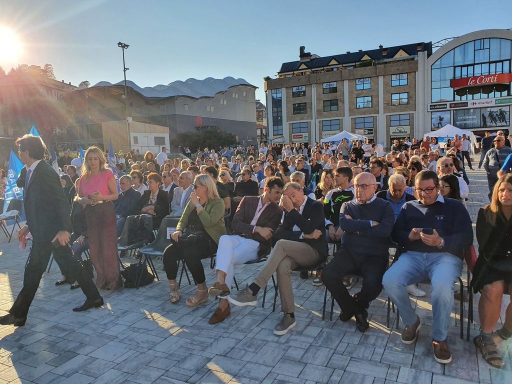 I candidati, introdotti dal referente provinciale Andrea Pellicini, si sono presentati alla piazza, a partire da Andrea Tomasini, che ha ricordato di aver iniziato la sua militanza quando Giorgia Meloni era presidente del partito giovanile.