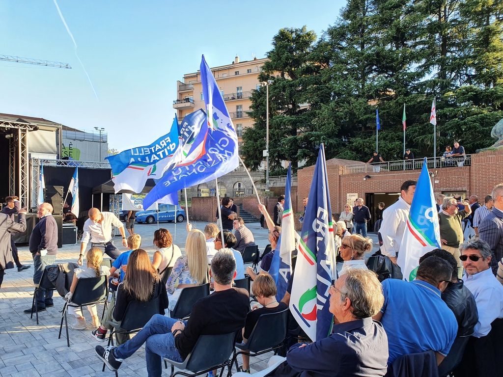 Lucrezia Mantovani ha invece evidenziato la «coerenza di Giorgia Meloni, che non ha mai voluto fare inciuci di palazzo. Il nostro programma ne è la conseguenza: non una raccolta di buone intenzioni, ma un progetto concreto». Alessio Butti ha criticato il sistema elettorale «al quale si è opposto solo Fratelli d’Italia», per poi prendersela – tra gli altri – con Giuseppe Conte ma anche con Draghi, «che non ci sta consegnando una realtà così consolidata dal punto di vista economico».