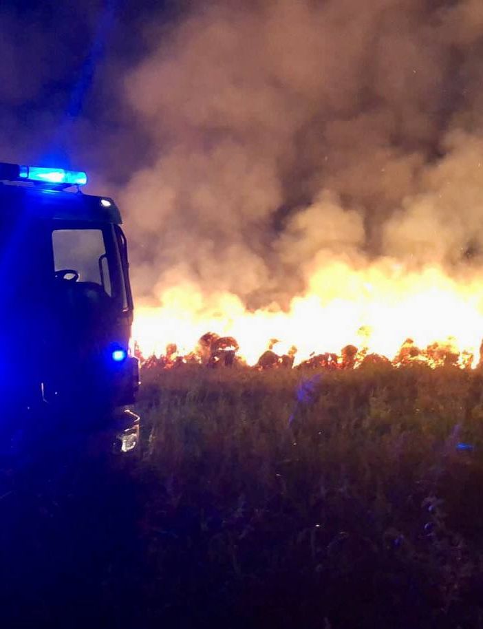 Maxi incendio a Caronno Pertusella: cento rotoballe di fieno in fiamme. Vigili del fuoco a protezione di case e ferrovia