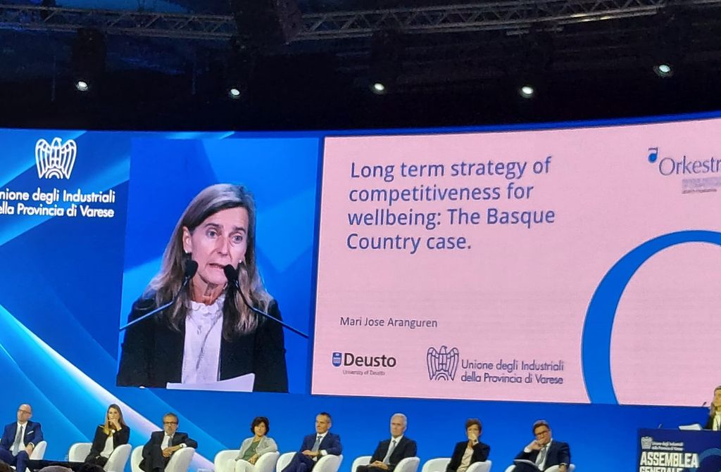 A proposito di contributi, dopo la relazione del presidente di Univa è intervenuta Mari Josè Aranguren, professoressa e Direttore Generale dell’Istituto Basco per la Competitività, che ha illustrato un caso di eccellenza di ridisegno competitivo territoriale nell’area Nord della Spagna.