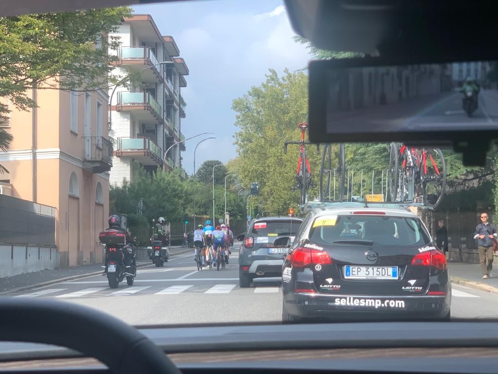 Saliamo sulla Megane elettrica dell'organizzazione all'inizio del sestultimo giro: di fianco a noi l'amico Vittorio Ballerio, socio della Società Ciclistica Alfredo Binda, mentre alla guida c'è un tipo che qualche anno fa sarebbe stato in un altro posto, col sudore sulla fronte e i muscoli urlanti. È Francesco Frattini, varesino, ex professionista, stagioni trascorse tra la Gewiss, la Batik e la Telekom, due Giri d'Italia e quattro Tour de France all'attivo.