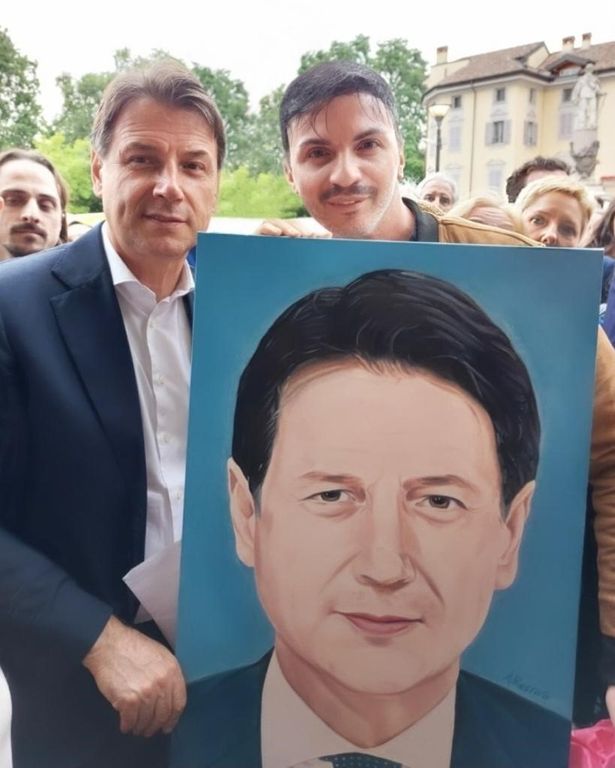 Ritratti anche per i campioni dello sport come Marcell Jacobs, medaglia d’oro alle Olimpiadi di Tokyo nei 100 metri, il bomber dell’Inter Lautaro Martinez, il portiere della nazionale Gigio Donnarumma, il campione del mondo Gigi Buffon, il numero 10 della nazionale Lorenzo Insigne, la Scarpa d’oro 2019 della Lazio Ciro Immobile. E nel mondo della politica ha immortalato sulla tela il viso di Matteo Salvini e Giuseppe Conte. «Recupero una foto nitida – spiega – la riporto su tela attraverso il reticolato, una tecnica grafica della proporzione che permette di ottenere le dimensioni reali del personaggio o di qualsiasi oggetto, infine dipingo con la tecnica dell’olio su tela».