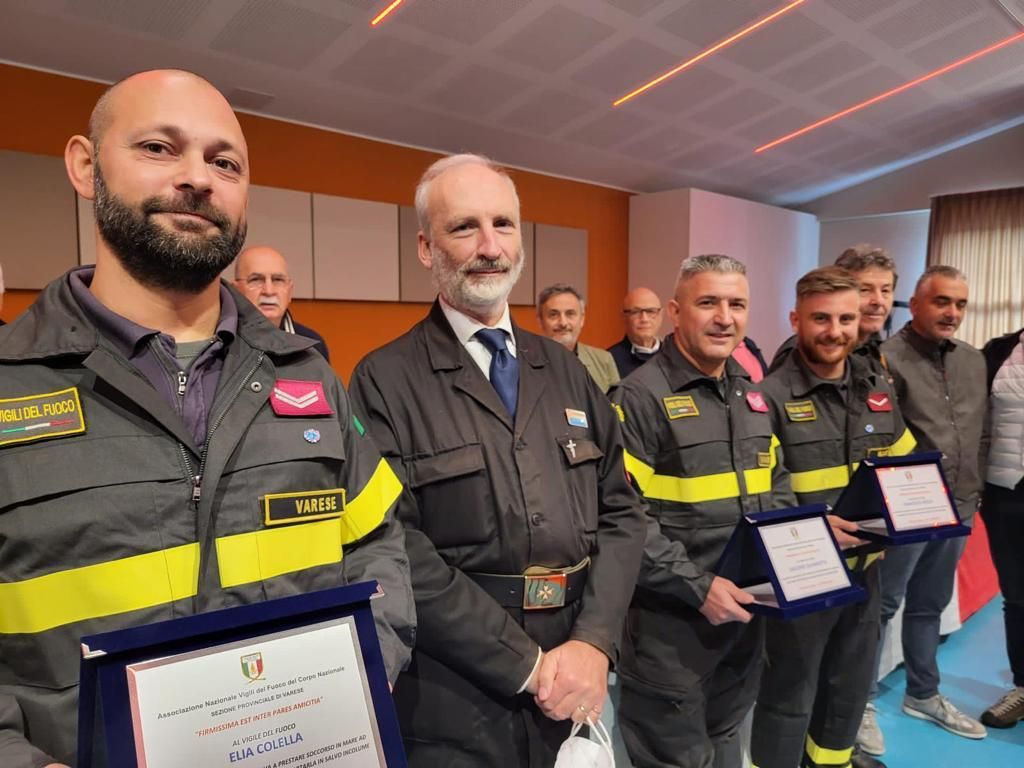 In apertura alla presenza del Comandante Provinciale Generale Antonio Albanese sono state consegnate le targhe ed encomio a tre persone, tre vigili del fuoco che si sono particolarmente distinti con atti eroici: Francesco Aiello e Giacomo Cavarretta di Varese che nel mese di agosto fuori servizio su un volo di linea per raggiungere una località di villeggiatura hanno salvato la vita ad una donna che ha avuto un blocco cardiaco, Elia Colella che invece ha salvato la vita sempre fuori servizio sul litorale siciliano una cittadina francese che stava annegando. Persone speciali questi Vigili del Fuoco che lo sono per missione di vita, non solo per professione.