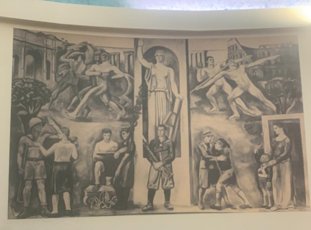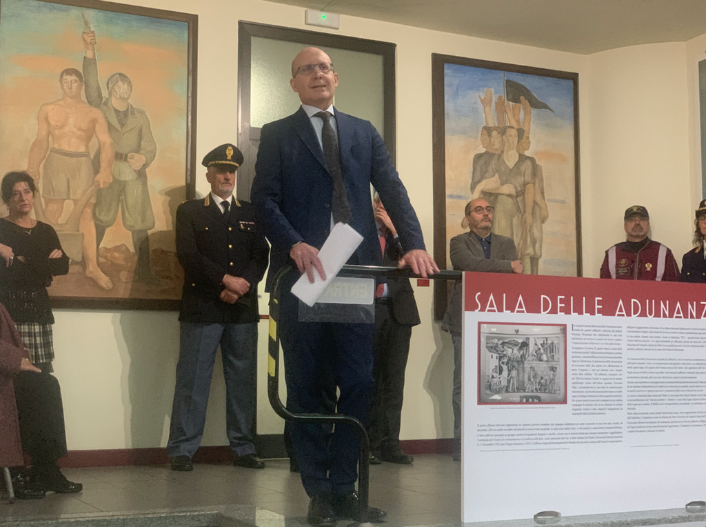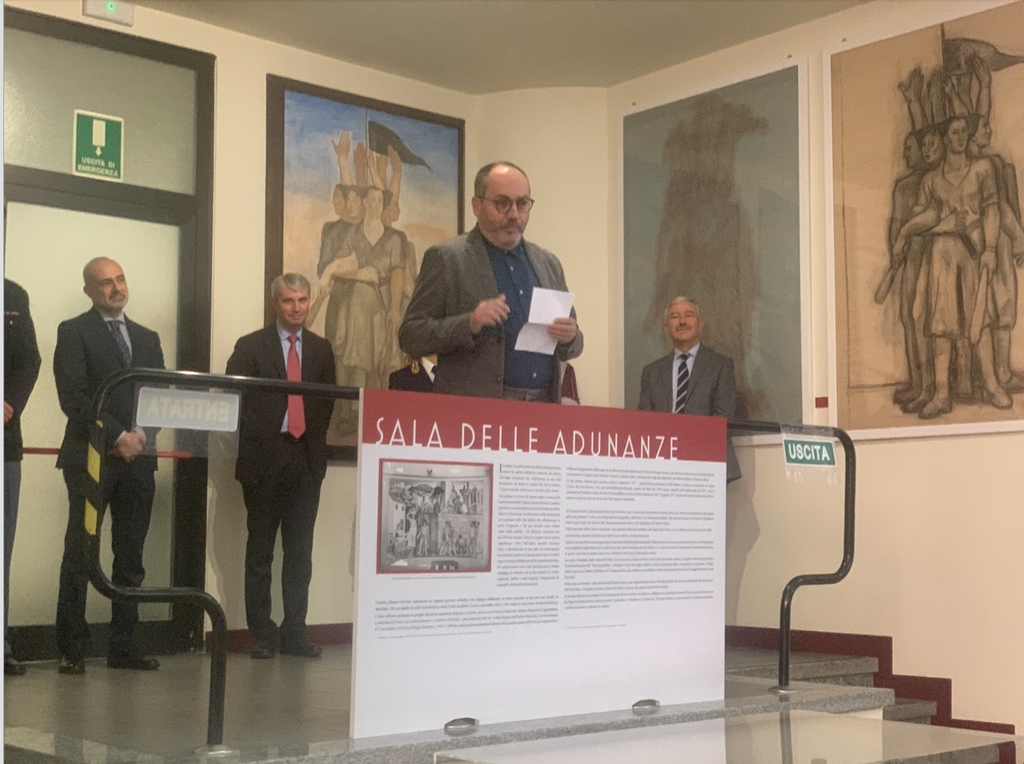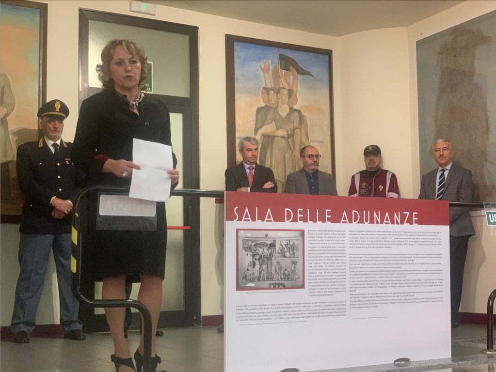 «In questo luogo architettura e arte dialogano in modo coerente - spiega subito dopo l’assessore alla Cultura del Comune di Varese Enzo Laforgia - E ciò che abbiamo qui lo dobbiamo a quanto accadde nell’aprile del 1945, subito prima della Liberazione, quando venne data la direttiva di rispettare le strutture e le case del fascio con quanto esse contenevano. Così il patrimonio che ammiriamo oggi si è salvato: queste opere rappresentano in modo straordinario un momento storico, sono come un libro di storia. L’arte non va snobbata se non ci piace da ciò che proviene: quanto si deposita nel tempo resta lì a ricordarci ciò che siamo stati, da dove veniamo e che strada abbiamo fatto».