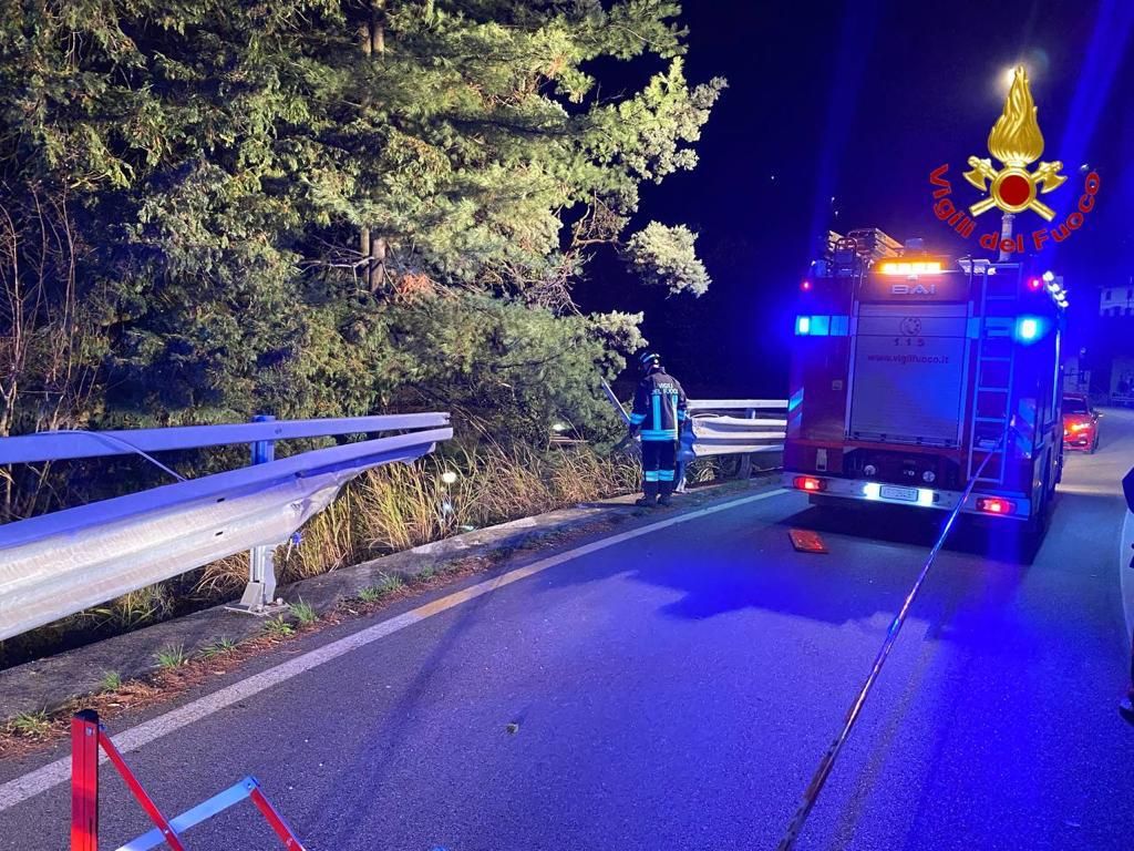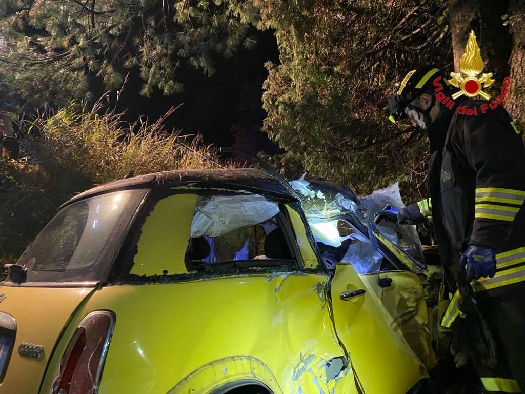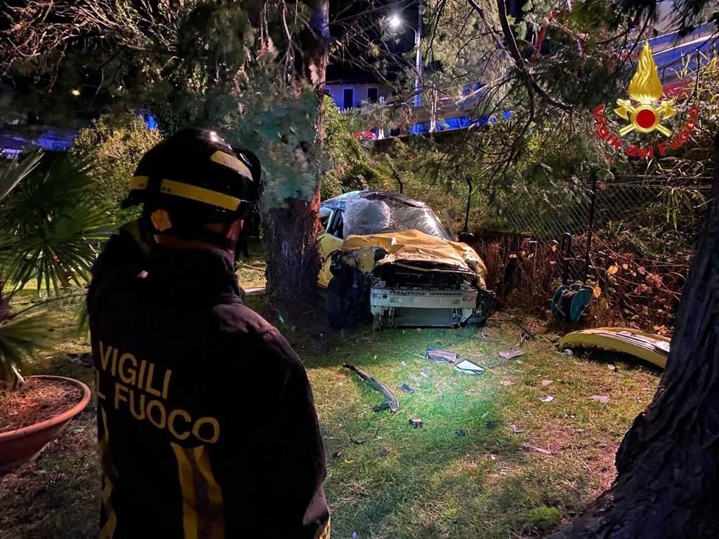 FOTO. Paura nella notte a Luino: un'auto sfonda il guard rail, colpisce una pianta e finisce nel giardino di una villa