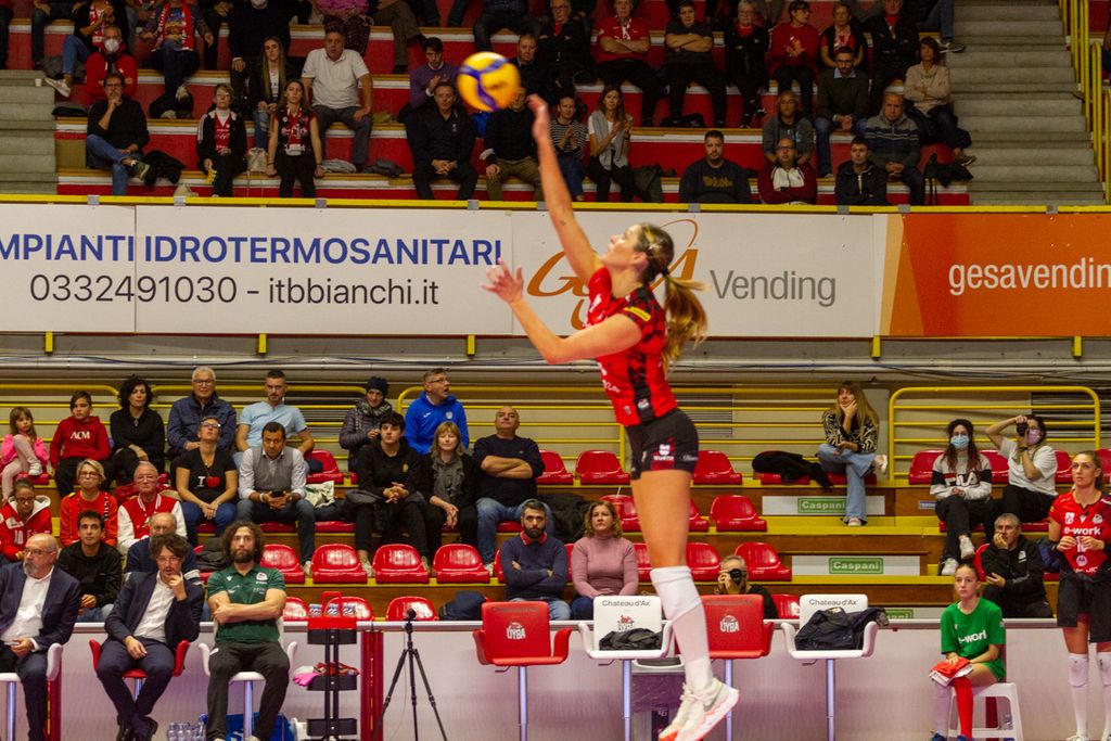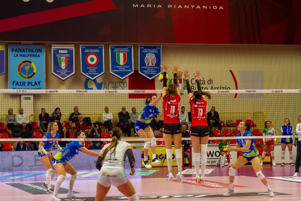 Finalmente Busto con il sestetto tipo: Lloyd al palleggio in diagonale con Montibeller, Degradi e Omoruyi in banda, Olivotto (gestita con Chieri) e Zakchaiou al centro, Zannoni (quanto sei mancata, nda) libero.