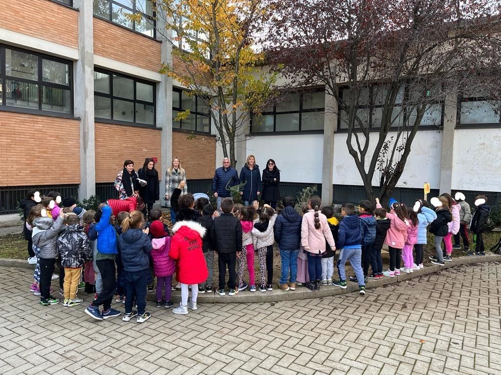 In occasione della Giornata Nazionale degli Alberi, oggi la presidente del consiglio comunale Laura Rogora e il consigliere delegato al Verde Orazio Tallarida hanno partecipato alla piantumazione di nuove essenze nella nuova aiuola realizzata dall’Amministrazione nel cortile della scuola Ada Negri, nel quartiere di Sacconago.