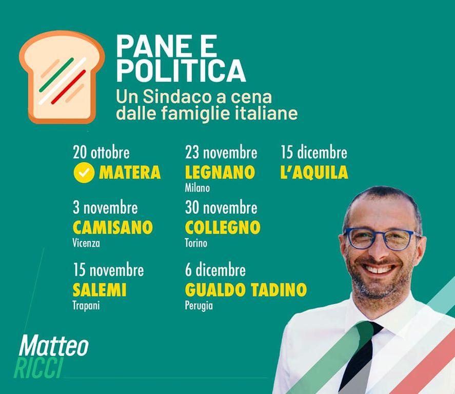 «La fase costituente l’abbiamo presa sul serio: siamo la sinistra di prossimità e pensiamo a un nuovo Pd del riscatto sociale e del benessere equo e sostenibile» ha spiegato. Durante la serata interverrà anche il candidato alla presidenza della Regione Lombardia Majorino. La cena “condivisa” sarà trasmessa sulla pagina Facebook di Matteo Ricci, chi vorrà potrà interagire commentando con domande, che verranno lette.