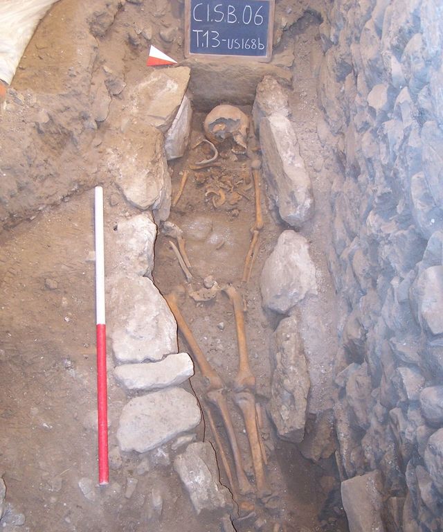 Primo autore dell’articolo e principale investigatore è Chiara Tesi, borsista di ricerca all’Università dell’Insubria. L’individuo oggetto dello studio, un giovane maschio adulto di circa 20 anni, era sepolto nella Tomba numero 13 nell’atrio funerario interno alla chiesa, in un’area sepolcrale un tempo localizzata di fronte all’antica facciata romanica dell’edificio e La sepoltura è stata datata tra l’XI e il XIV secolo.