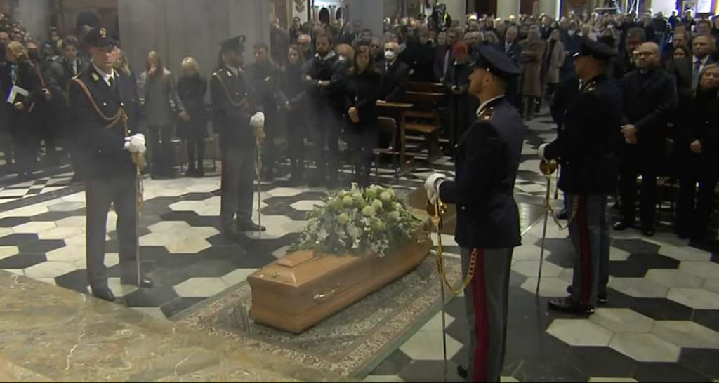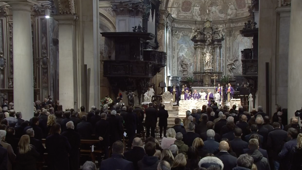 Toccante e commovente il messaggio letto dal figlio: «Papi, sappiamo che per te non è stato facile essere papà - ha detto al microfono - perché il tuo lavoro ti ha portato a essere spesso lontano da casa, ma non siamo mai stati arrabbiati con te per questo. Forse solo ogni tanto. Ma durava poco. Perché poi era sempre una grande gioia quando tornavi nel weekend. Non è stato facile per te essere un papà perché eri un timidone, un introverso. Nonostante le tue uscite in tv o al G8 insieme ai potenti della Terra per te era difficile tirare fuori le tue emozioni. Sapevamo però che ci volevi un bene infinito». «Ti sentivi in colpa perché non eri spesso a casa - ha continuato - Ma non ci hai mai fatto mancare il tuo affetto, con i tuoi messaggi o quando ci aspettavi per ore sul divano aspettando che qualcuno di noi tornasse a casa nella notte. Hai sempre cercato di sorridere, anche quando non riuscivi più ad alzarti dal letto. Il tuo amore ci è arrivato tutto. Buon cammino, papà». Un messaggio che ha commosso anche il premier Meloni.