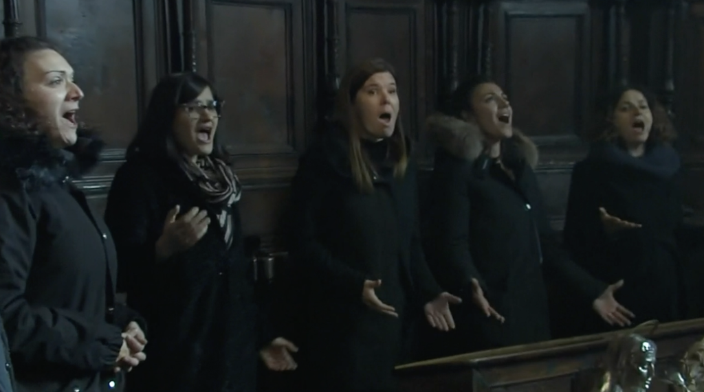 Dopo il silenzio e gli applausi è il momento della musica: le noto del Coro Gospel Greensleeves accoglie il feretro all'altare. Quella stessa musica che Maroni amava e metteva sul palco con passione con i Distretto 51.