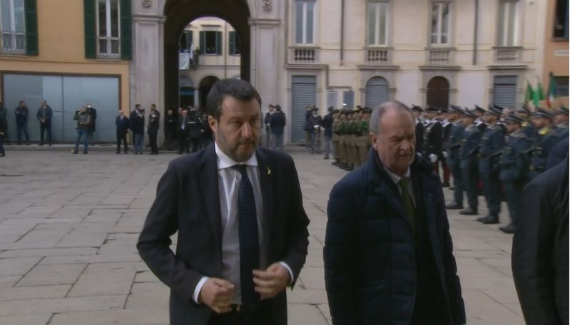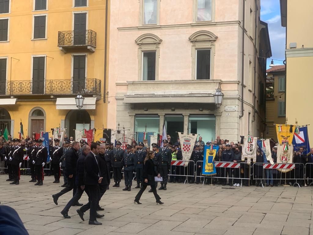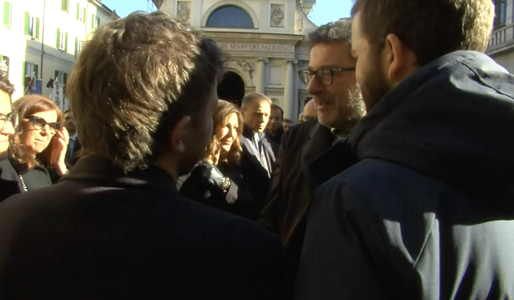 Il feretro di Roberto Maroni ha fatto il suo ingresso in piazza: ad accompagnarlo in un toccante e irreale silenzio il picchetto d’onore di bersaglieri e forze dell’ordine schierate sull’attenti nella piazza. Un lungo applauso e i rintocchi delle campane hanno accompagnato la bara all’interno della Basilica. Poi è suonato il silenzio come prevede il protocollo.