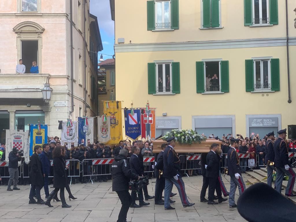 Si è conclusa la cerimonia funebre. La musica ancora una volta protagonista: in Basilica risuonano le note di “Come una bugia”, brano dei Distretto51, storica band in cui Maroni suonava le tastiere. Al termine un grande saluto e il grido «Ciao Bobo» risuona nella piazza.