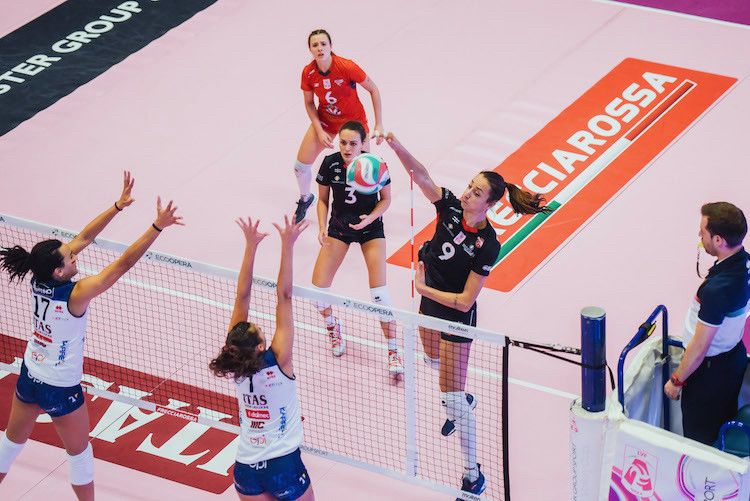 Una gara strana quella del PalaSanpabolis con le due formazioni che battagliano a suon di botta e risposta per due parziali spettacolari, in cui sono solo i dettagli a fare la differenza, e lo fanno in favore proprio di Michieletto e compagne capaci di essere più ciniche e cattive quando si tratta di chiudere. Completamente un’altra faccia e piega la prende il terzo e ultimo set in cui si spegne la lampadina nel campo bustocco e saltano di conseguenza anche tutti i meccanismi con la Itas che passeggia dopo un pesantissimo 8-0 iniziale. Un risultato insomma costruito con costanza di prestazione e cattiveria dalla squadra di Saja, che non rispecchia però a pieno le forze del team di Amadio, anche per quanto fatto vedere nella prima tranche di gara.