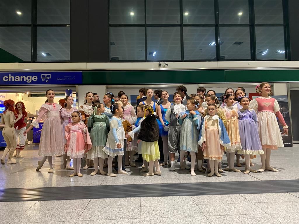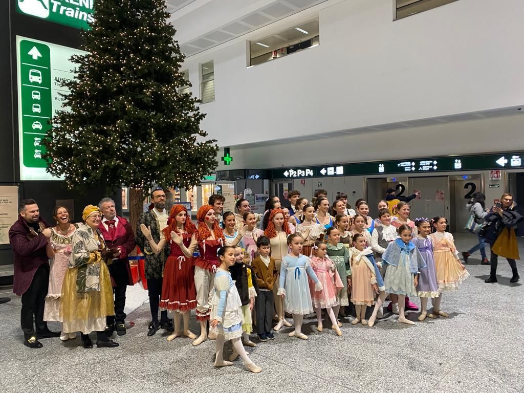 L'evento è iniziato alle sei nella zona Arrivi A, quindi si è trasferito nel piano Food Court, zona ristorante Rossopomodoro. Infine, al piano Partenze, zona check-in 5/9. Tutti hanno avuto dunque l'opportunità di gustarsi lo spettacolo, chi arrivava e chi partiva e chi magari era in attesa di accogliere un familiare o un amico.