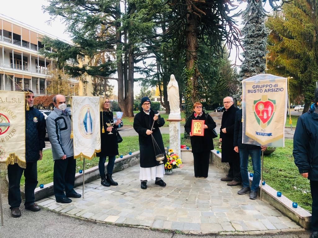 L’idea è arrivata dopo la recita di un rosario alla fine di maggio. «Ci siamo trovati con i flambeau accesi davanti alla Madonnina – spiega il presidente Unitalsi di Busto Arsizio Nicola Ruggiero – che si trova tra l’Hospice, la psichiatria e il reparto di malattie infettive».