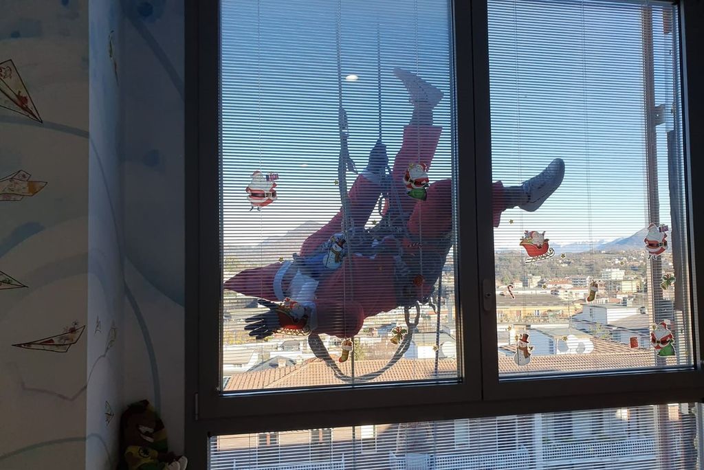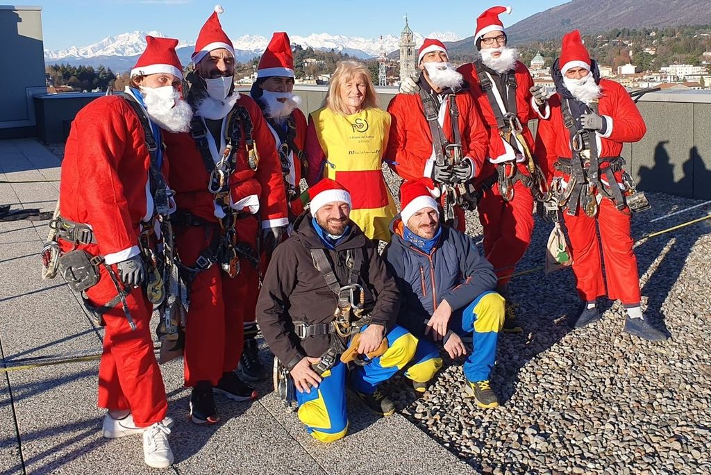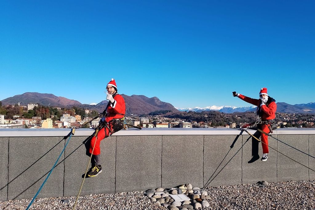 Alle 8 di questa mattina, 11 dicembre, il tetto dell’Ospedale Del Ponte di Varese si è animato di strani personaggi che trafficavano con corde e imbragature. Terminato di far scendere funi verso il basso, si sono vestiti da Babbo Natale e con grande abilità e coraggio, si sono calati verso le finestre delle stanze dei bambini ricoverati in Pediatria.