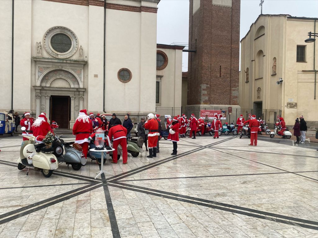 In una mattinata grigia, come quella di oggi, gli Amicinvespa del Vespa Club Busto Arsizio vestiti da Babbo Natale hanno portato un po’ di colore in pazza Santa Maria. Un evento patrocinato dal Comune di Busto Arsizio e con lo scopo di raccogliere fondi da donare a due associazioni della città: Casa Gialla e Caos.