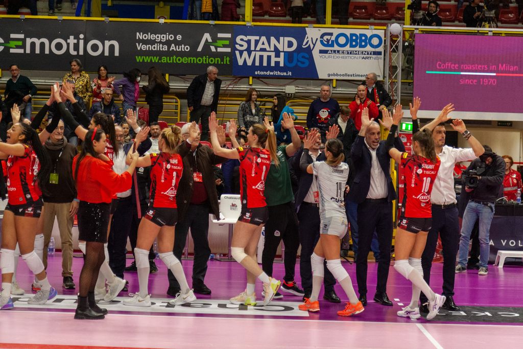In una bella cornice di pubblico (oltre 1.600 spettatori), le farfalle della e-work Busto Arsizio fanno festa per la vittoria su Cuneo (LEGGI QUI), il sorpasso in classifica e l’approdo all’ottavo posto che – ad oggi – garantisce i quarti di finale di Coppa Italia. Una bella domenica sera di pallavolo in viale Gabardi, con tanti motivi per sorridere. Ecco le “facce da palazzetto” nella fotogallery a cura di PhotoSport & more.