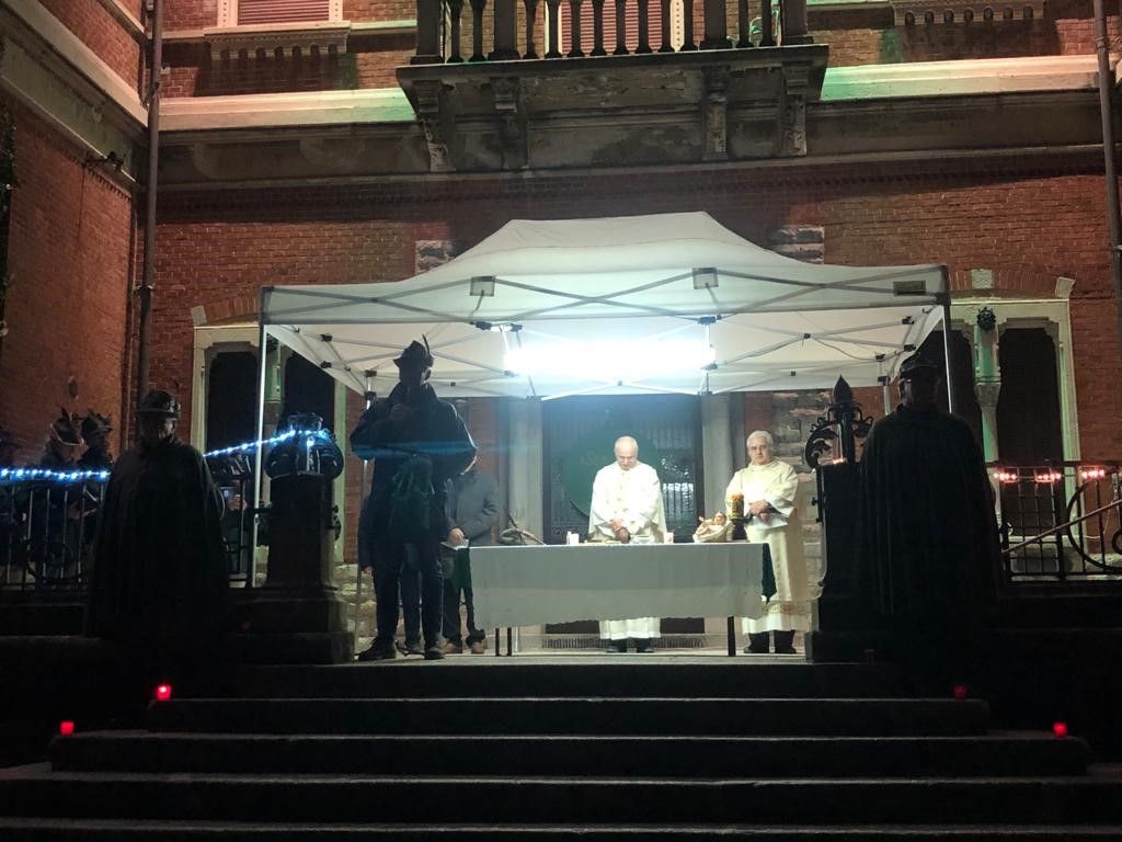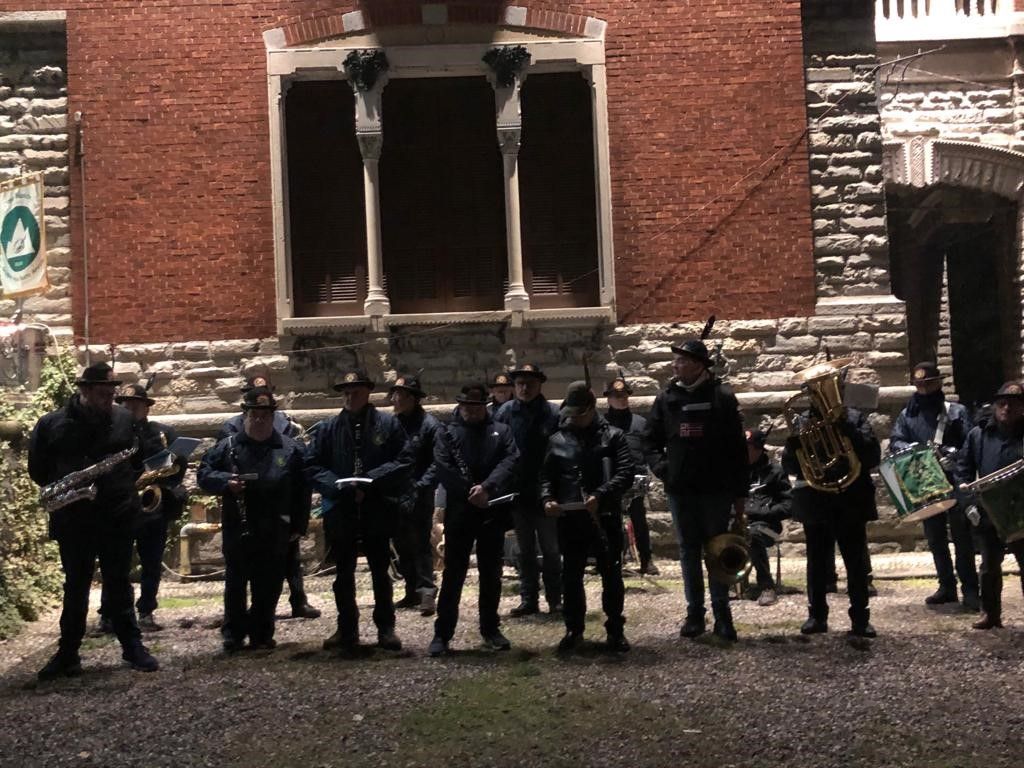 Dopo due anni di stop finalmente torna a popolarsi il parco di Villa Tosi per la tradizionale messa degli alpini. Erano in tanti questa sera attorno al terrazzo della bella residenza di fianco al Museo del Tessile e di fronte alla sede degli alpini. Un’atmosfera suggestiva resa ancora più affascinante dalle luci di Natale ha accolto famiglie, giovani, alpini, simpatizzanti, tutti riuniti per scambiarsi gli auguri di Natale e ascoltare la messa celebrata da monsignor Severino Pagani.