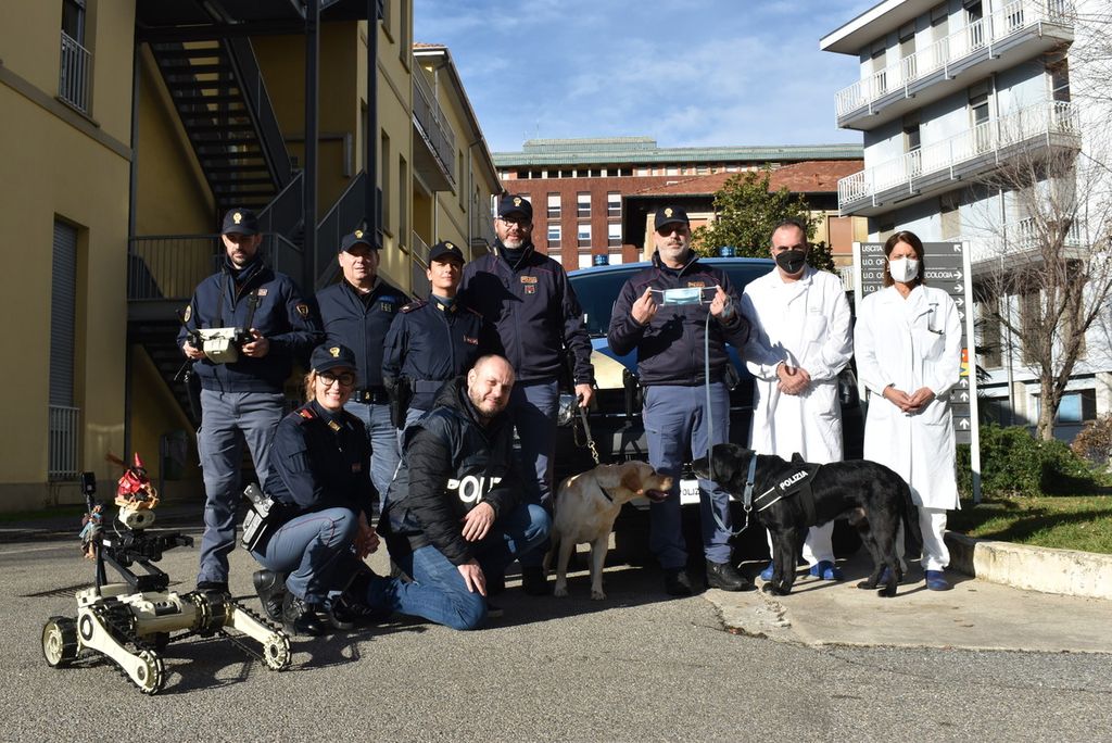Il personale sanitario così come i visitatori del reparto di pediatria hanno potuto vivere insieme ai bambini ricoverati di un momento di spensieratezza ed allegria oltre che di notevole interesse per la visita che ha visto coinvolti due cani dell’Unità cinofila e delle apparecchiature, tra cui un robot, utilizzati dagli specialisti artificieri nella quotidiana attività di ricerca di esplosivi e ordigni.