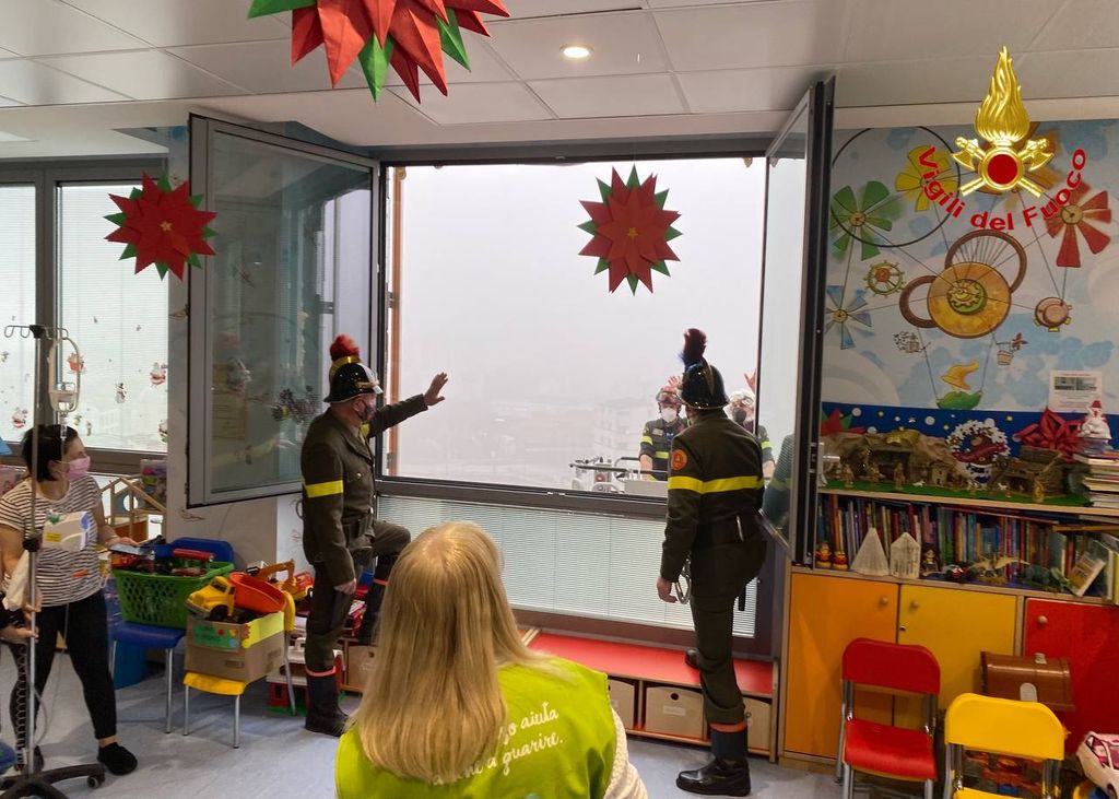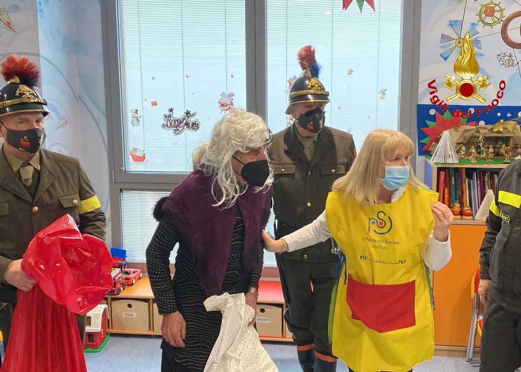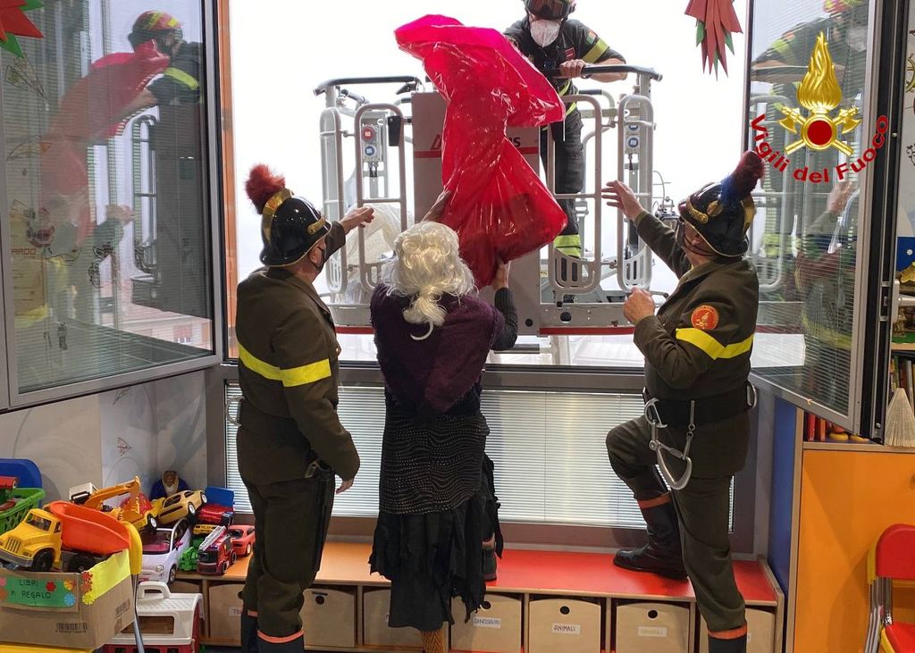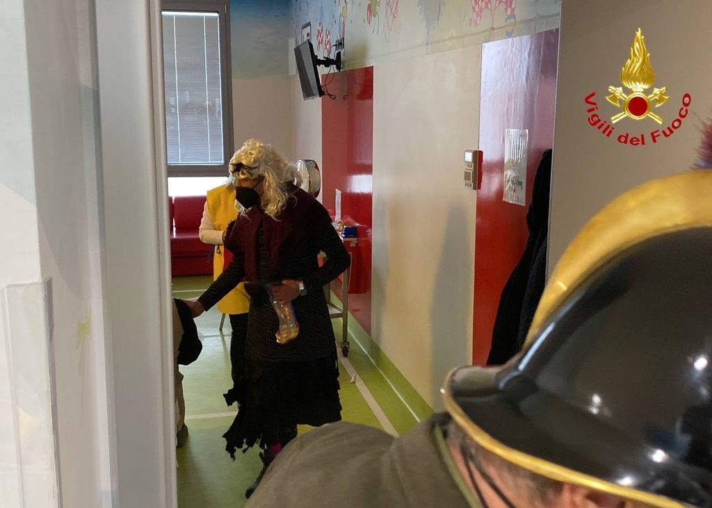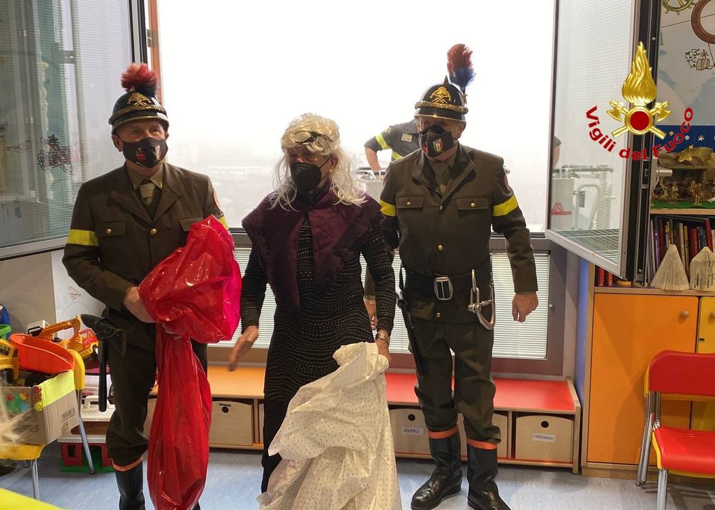 La Befana ha portato i suoi doni ai bambini arrivando "dal cielo", entrando da una finestra del quinto piano grazie all'autoscala dei vigili del fuoco dispiegata verso la sommità della struttura. I regali sono stati distribuiti anche negli altri reparti grazie al personale dell'ospedale.