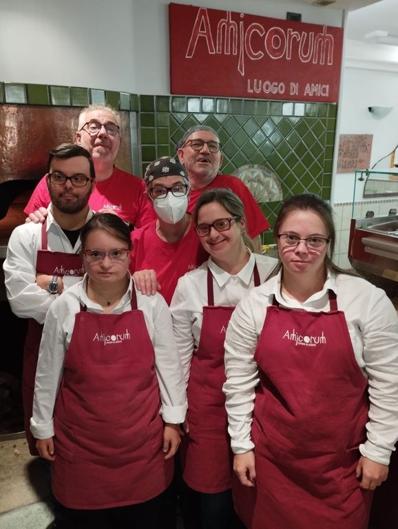 «Una decina di loro hanno già trovato un’occupazione presso aziende esterne in vari settori (informatico, vendita)» racconta ancora Gianni Macchi «si tratta di Francesco, Nicolas, Alice, Mattia, Isacco, Valentina e Ivan, che lavora in un’azienda per il benessere dei dipendenti»; mentre li nomina ad uno ad uno si vede un misto di soddisfazione e commozione nei suoi occhi, lo stupore di aver dato origine ad un luogo che non protegge dal mondo ma che lancia nel mondo i ragazzi all’insegna dell’inclusività e della professionalità. Tutto è reale presso la pizzeria “Amicorum”, anche la retribuzione, ricevuta da ciascuno dei ragazzi per il lavoro svolto con puntualità, precisone e competenza.