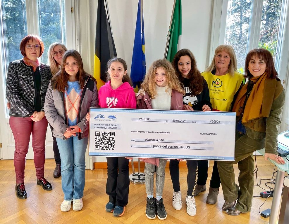 Il 17 e il 20 gennaio alla Scuola Europea di Varese (www.eursc.eu) si sono tenute le cerimonie di consegna del ricavato del mercatino di Natale 2022 devoluto a sostegno delle attività benefiche svolte dall’Associazione Il Pezzettino e ai progetti della Onlus Il Ponte del Sorriso.