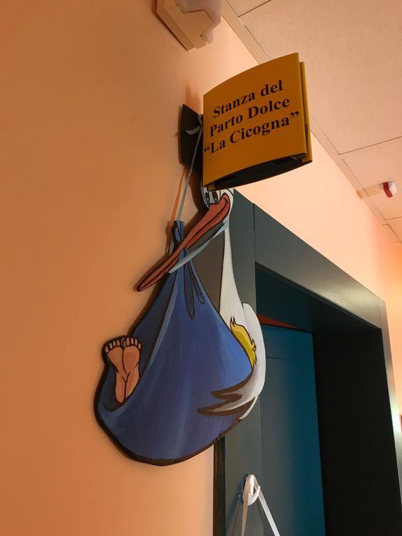 Entrando nella Stanza della Cicogna, l'impressione è quella di trovarsi in una casa: un bilocale con parquet, una piccola libreria, delle candele, dei quadri alle pareti dipinte di un caldo color pesca, che dà alle due stanze un'atmosfera accogliente e intima. Non tutte le gravide, però, possono partorire nella Stanza della Cicogna: requisito fondamentale è che la gravidanza sia stata fisiologica, per garantire la massima sicurezza di mamma e bambino.