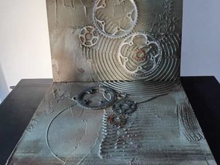 Tra questi, Andrea Genovese, ad esempio, si esprime con le resine; nelle sue opere si ammirano spazi sommersi, distese calme e siderali, fiumi di colore, ibridazioni materiche. Nelle sue creazioni sono racchiusi e ibridati mondi diversi e lontani tra loro, realizzati con materiali vari, oggetti, tessuto, legno, bulloni e resine. Per Andrea Genovese, cittadino di Cassano Magnago, esprimersi con la resina è un lavoro artigianale, quotidiano, realizzato come professionista nel settore delle resine decorative (azienda AMBER GREEN a Gallarate), ma è anche una passione espressa nella libertà del momento feriale, sganciata dalla logica del profitto o dall’esigenza del committente.